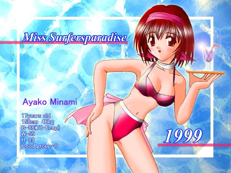 ここのHPの看板娘の南 絢虎(みなみあやこ)です。 ミス・サーファーズパラダイス用に描いたものです 疲労で最後の最後でレイヤー統合したところで保存してしまって もうどうしようもない状態です(TT 絢虎の初CGでしたね〜