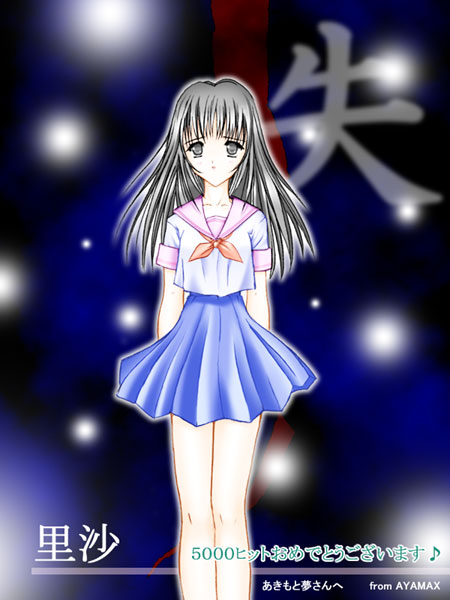 サイト「DiasBlue」のアクセス記念に贈らせて頂きました。 創作系の同人活動をされていまして 愛らしい絵柄が個人的にお気に入りです☆ 作品「失」より2人いるヒロインの1人、里沙です CGの送り先サイト♪